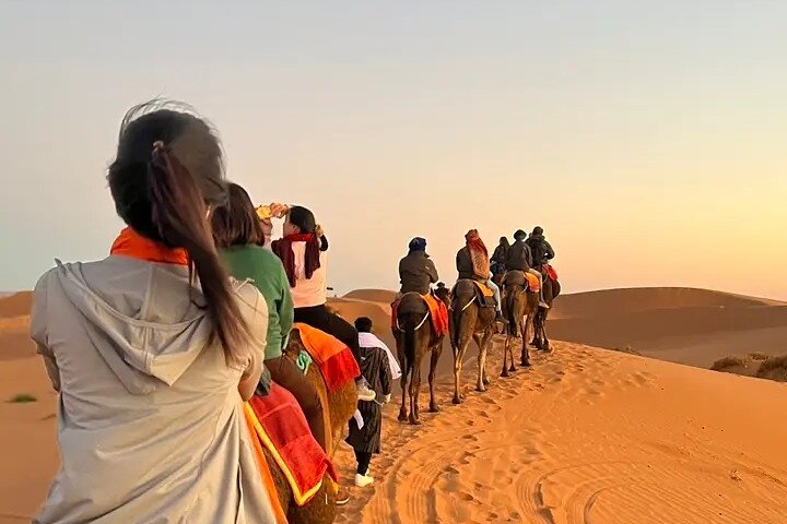 "Your Unforgettable 4-Day Sahara Adventure: From Marrakech to Merzouga Set off on an extraordinary private journey that takes you deep into the heart of southern Morocco — from the vibrant streets of Marrakech all the way to the vast, golden expanse of the Sahara Desert in Merzouga. This carefully paced 4-day tour blends scenic beauty, cultural treasures, thrilling desert experiences, and unforgettable moments under star-filled skies."